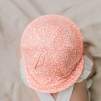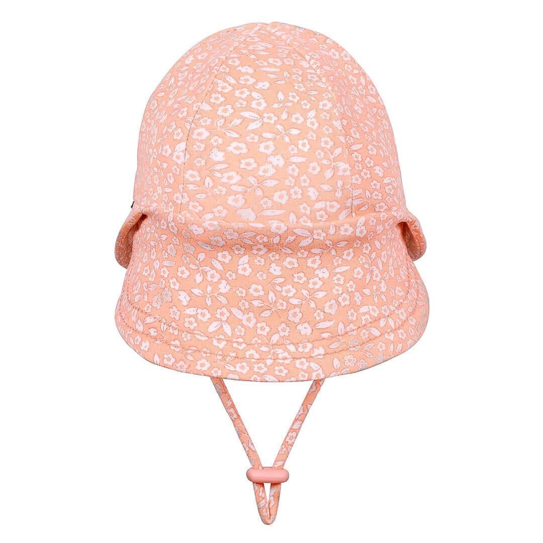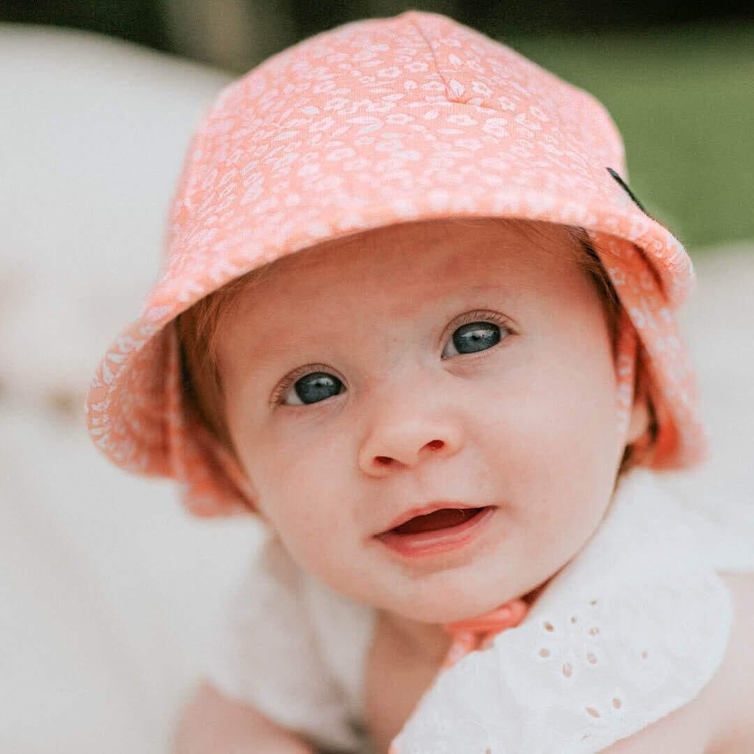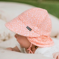 A new colourway for us for spring: a peach hat with simple white flowers ? one to wear with crisp whites and classic denim. Available in Legionnaire, Toddler Bucket and Ponytail Bucket.