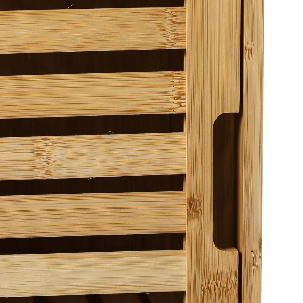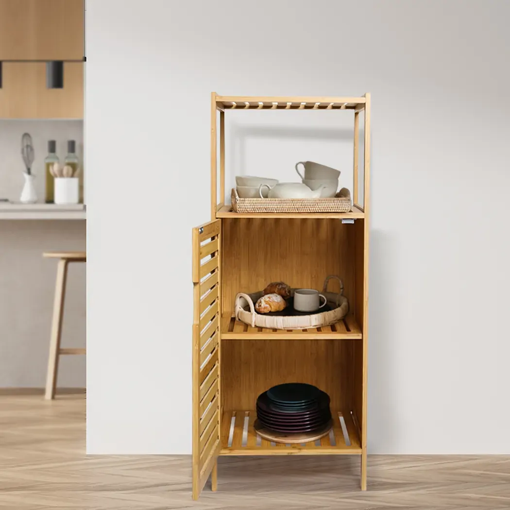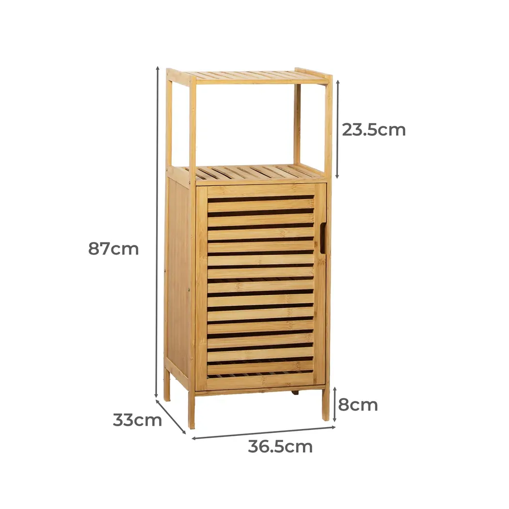 Levede Bamboo storage cabinet is humanized-designed with 2-tier accent shelf for display and blocked with door for storage function, making the full use of vertical space in corner & saving more floor space for other usage.