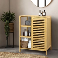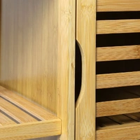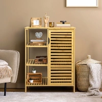 Levede Bamboo storage cabinet is humanized-designed 3 open shelves and a large storage cabinet with door for storage function, making the full use of vertical space in corner & saving more floor space for other usage.