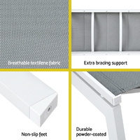 Make the most out of every sunny day with a Gardeon Sun Lounger. Made from breathable textilene fabric on a strong powder-coated aluminium frame, the lounger is sturdy and resistant to weather and corrosion. Non-slip feet and extra bracing support keeps the chair upright and stable with a 150kg weight capacity. 5 adjustable backrest settings offer you the perfect position to rest and relax. Smooth wheels make the chair easy to move and chase the sun. Best of all, the lounger is easily assembled and can be used anywhere such as the beach, the park, poolside or even indoors. Have more fun in the sun with a Gardeon Sun Lounger.
