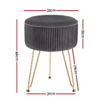 Round velvet Artiss footstool with vertical stripe design, durable MDF frame, and high-resilience foam padding. Features protective metal legs and simple assembly.