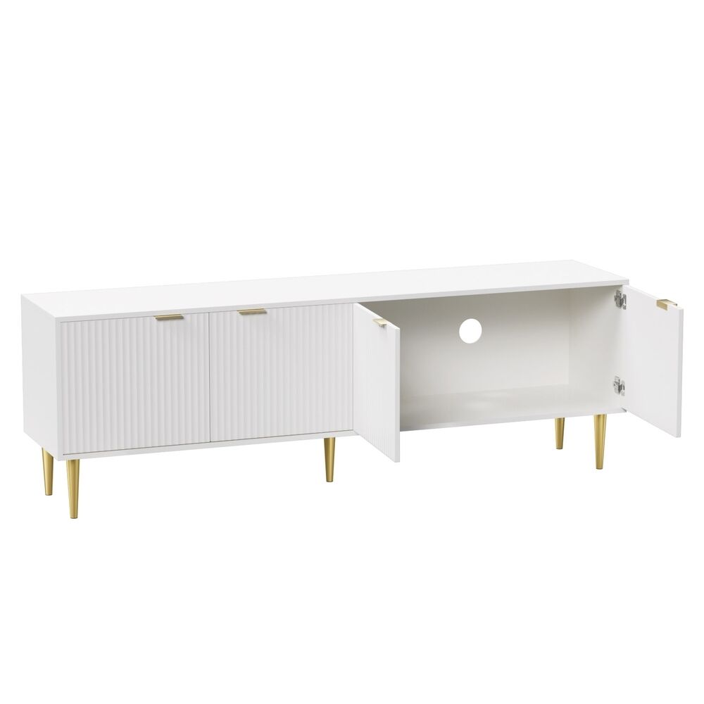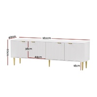 Introducing the Riley Entertainment Unit, a stylish and functional addition to your living space. This unit features a 4-door cabinet with reeded door panels, adding a touch of elegance to its design. With its sturdy construction and metal golden legs, it not only provides durability but also adds a modern flair to your room. The Riley Entertainment Unit is not only aesthetically pleasing but also practical. It comes with floor protectors to prevent any damage to your floors and cable management to keep your wires organised and tangle-free. With its high weight capacity, you can confidently store your entertainment devices and accessories. Assembly is a breeze, making it easy for you to set up and enjoy your entertainment area in no time. Entertain in style with the Riley Entertainment Unit from Artiss.