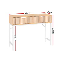 Introducing our elegant Artiss console table, crafted from MDF with a sleek melamine finish. Featuring a fluted front design, two drawers with metal handles, smooth metal runners, and sturdy metal legs with protective pads. Includes wall attachment for stability. Easy to clean and assemble.