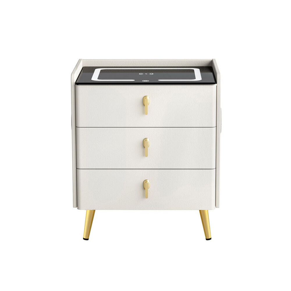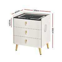 Crafted with premium PU leather upholstery and a tempered glass tabletop, the Artiss Smart Bedside Table is both durable and stylish. Three spacious drawers with smooth metal runners and sleek metal handles provide plenty of storage, while the sturdy metal legs with floor protectors ensure stability. It's easy to maintain making it the ultimate companion for a tech-savvy lifestyle.