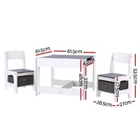 Introducing our Keezi kid's table and chairs set, crafted for durability and practicality. Made from non-toxic materials with reversible tabletops and chalkboard desks, it offers hidden storage and safe, easy-to-maintain edges. Simple assembly, ideal for ages 3 and above.