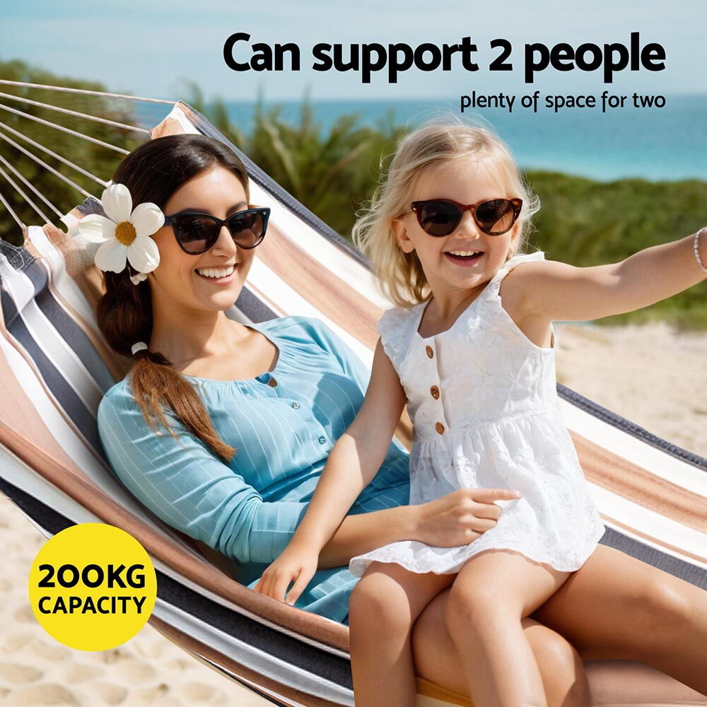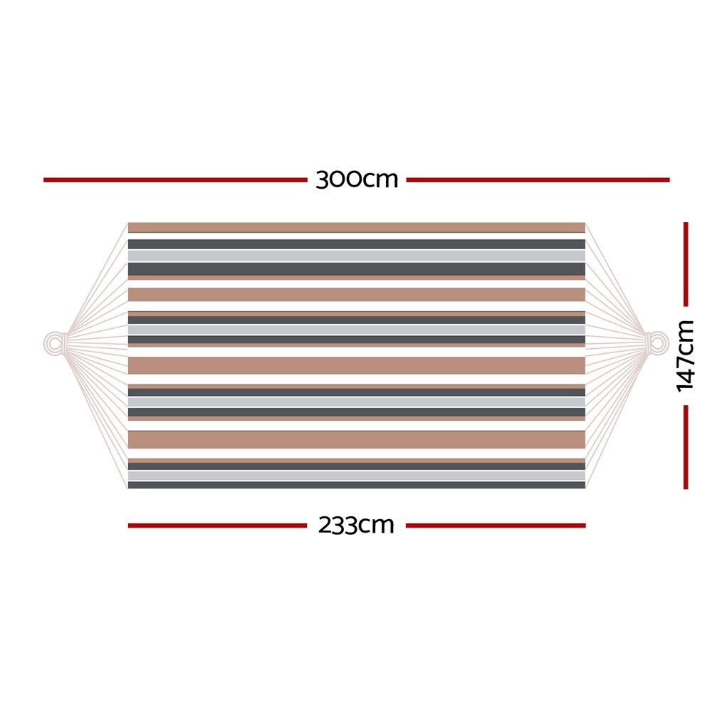 Relax in style with the Gardeon Hammock Bed, designed for ultimate comfort and durability. The lightweight and easy-to-carry hammock features superior strength and wear-resistant materials, making it perfect for both indoor and outdoor use. With plenty of space to support two adults, it's the ideal choice for any lounging spot. Please note that the stand is not included.