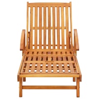 This wooden sun lounger set combines style and functionality and will add a touch of rustic charm to your garden, patio, pool deck or other outdoor living space. Constructed from solid acacia wood, the sun lounger is weather-resistant, durable and suitable for outdoor use. Equipped with wheels, it can be easily moved around. The backrest and footrest are adjustable from sitting fully upright to lie completely flat, which offers you the utmost comfort. The daybed can be folded away when not in use. The included cushion is more than a practical addition; it also has a decorative function. Note: In order to extend the life of your outdoor furniture, we recommend you to protect it with a waterproof cover.
