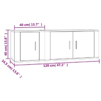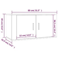 This classic TV cabinet set is designed to be a focal point of your room, featuring a trendy yet practical design. Sturdy material: The engineered wood is of exceptional quality with smooth surface and also features strength, stability and resistance to moisture. Made of engineered wood, these TV stands are easy to clean.Ample storage space: These TV units provide ample storage space to keep all your magazines, DVDs and any other items well organised.Wall-mounted design: These media cabinets don't take any floor space. You can hang them on the wall easily.Practical doors: Keep your essentials free from dust by hiding them behind the doors of the media units. Good to know:To make assembly as easy as possible, each product is delivered with a manual.Screws and plugs for inside the wall are not included. We advise to find and use screws and plugs suitable specifically for your walls. If you're not sure, you can consult with a professional. Please read and follow each step of the instructions.