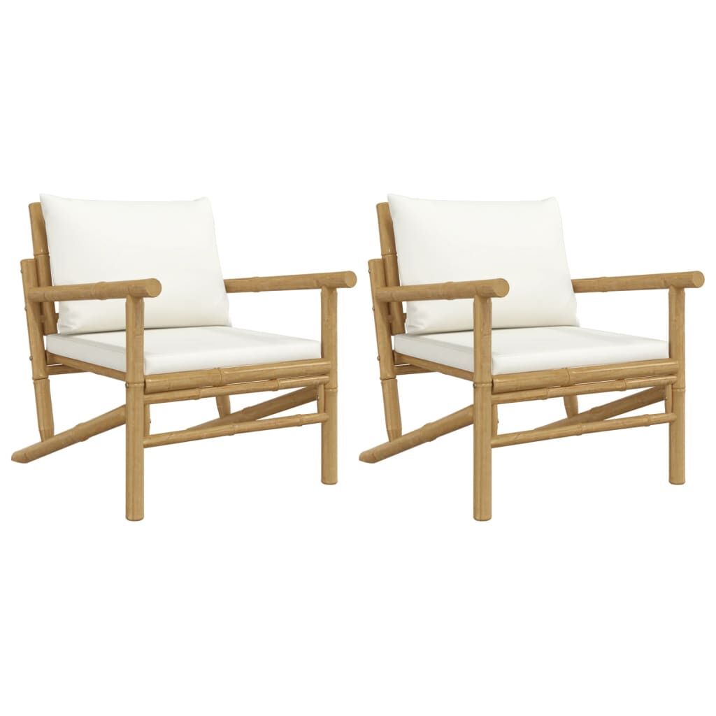 Enjoy a cup of coffee or tea with pleasant weather in your outdoor space with these elegant bamboo garden chairs! Durable material: The garden seating is made of bamboo. Bamboo is known for its flexibility and hardness. Bamboo furniture is a good option when you want strong outdoor furniture made from natural materials.Comfortable seat experience: The backrest adds extra seating comfort for the outdoor chair. Also, the thickly padded cushions provide comfort for your sitting time.Easy to move: With a lightweight construction, the patio chair is easy to move around. Note:To make sure your outdoor furniture stays beautiful, we recommend protecting it with a waterproof cover.
