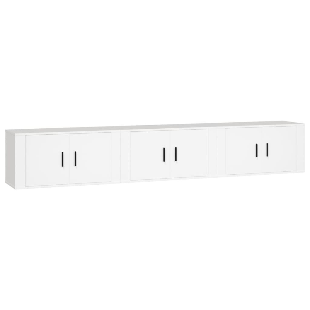 These wall-mounted TV cabinets feature a sleek and classic design, making them a decorative and practical extension to your decor. Durable material: The engineered wood is of exceptional quality with smooth surface and also features strength, stability and resistance to moisture.Ample storage space: The TV stand has a compartment, providing ample storage space for you to organise items like a media player, magazines, and others.Wall-mounted function: The TV unit doesn't take up any floor space. You can hang it on the wall easily.Sturdy top: The top of the media cabinet serves as an ideal place to put items such as books and ornaments.Practical doors: Keep your essentials free from dust by hiding them behind the door of the media unit. Good to know:To make assembly as easy as possible, each product is delivered with a manual.Screws and plugs for inside the wall are not included. We advise to find and use screws and plugs suitable specifically for your walls. If you're not sure, you can consult with a professional. Please read and follow each step of the instructions.