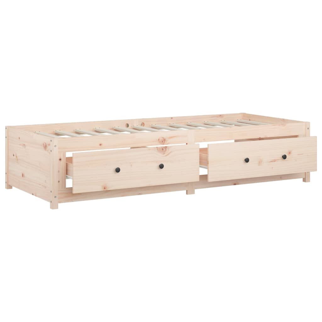 This versatile day bed can be used not only as a bed in the bedroom, but also fits ideally as a sofa in the living room. It will suit your different needs perfectly, providing you with plenty of space for sleeping or resting. Solid pine wood: Solid pine wood is a beautiful natural material. Pine wood has a straight grain, and the knots give the material its signature, rustic look.Multipurpose sofa bed: This wooden sofa bed can be used as a sofa during the day or as a bed at night, providing a quick solution for hosting overnight guests.Sturdy bed frame: The wooden frame of the guest bed ensures sturdiness and stability. The plywood slats provide good weight distribution, ensuring that the mattress stays in place with every twist and turn of your body during sleep.Storage function: The included bed drawers provide ample storage space for storing your essentials, keeping your room clean and tidy. Note:The delivery includes a bed frame only. The mattress is not included. You can check our shop for the matching mattresses.This bed frame is suitable for a mattress measuring 92 x 187 cm (AU Single Size).