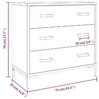 This wooden chest of drawers exudes a vintage charm and will be the centrepiece of your interior. Solid pinewood: The sideboard is crafted from solid pinewood with the greatest care, and the craftsmanship adds to its spectacular vintage style.Ample storage space: Equipped with drawers, the drawer cabinet offers ample storage space for keeping various daily essentials well organised and within easy reach.Sturdy top: The side cabinet has a sturdy top, which is perfect for placing your books and some decorative items.Metal feet: The metal feet of this storage cabinet ensure sturdiness and stability. Warning:In order to prevent overturning, this product must be used with the wall attachment device provided. Note:Each product comes with an assembly manual in the box for easy assembly.