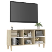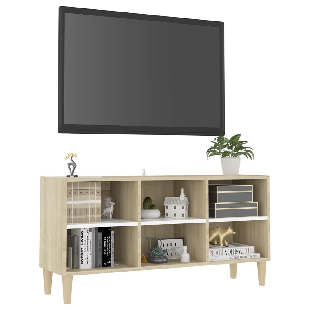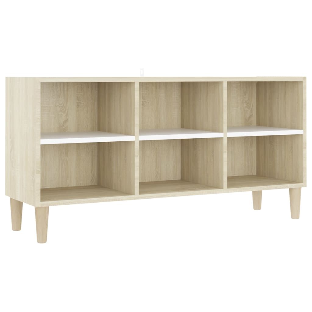 Upgrade your interior to the next level with this well-designed and chic TV cabinet, featuring a Scandinavian charm. This TV stand with four wooden legs is stable and sturdy. The sideboard is designed with 6 compartments and offers ample storage space for keeping your magazines, books, DVDs and multimedia devices well organised and within reach. Additionally, it is easy to clean with a damp cloth.