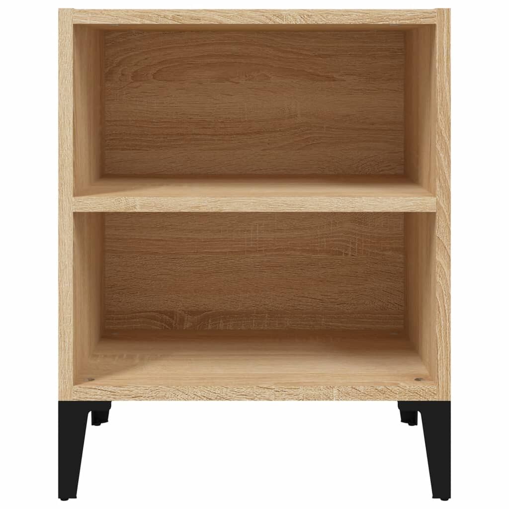 Bring an industrial style to your interior with this bed cabinet. This bedside cabinet with metal legs is stable and sturdy. Additionally, the nightstand is equipped with two shelves, providing ample storage space for keeping your essentials well organised and within reach. It is easy to clean with a damp cloth. Warning: To prevent it being overturned, this product must be used with the provided wall attachment device.