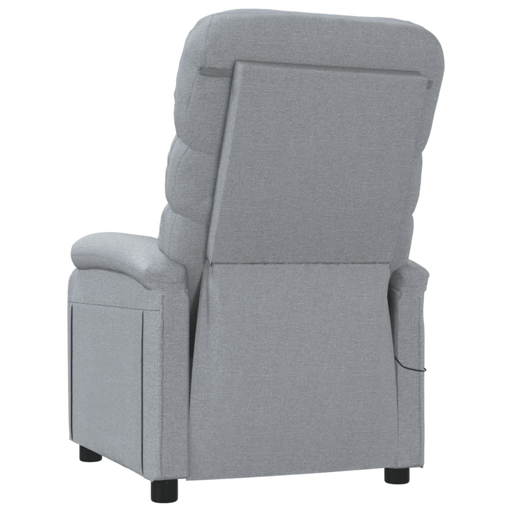 Sit back and drift away in this highly comfortable massage chair! Manual reclining function: The reclining chair is specially designed with 3 reclining positions so that you can adjust the backrest and footrest manually as per your comfort.Vibration function: The featured 6 massage points let you experience a better-targeted massage. Additionally, the included hand control allows you to pick different massage programs. The massage function is powered by the USB connector, but the certified 5V USB power source is not included.Comfortable seat experience: The thickly padded seat, backrest, and wide armrests covered in fabric provide a cosy and warm sensation, making you feel embraced while seated. The fabric features a simple and clean look, and is breathable and durable.Solid and stable frame: The frame made of wood and metal provides a strong structure and stability. This reclining armchair is comfortable and durable.