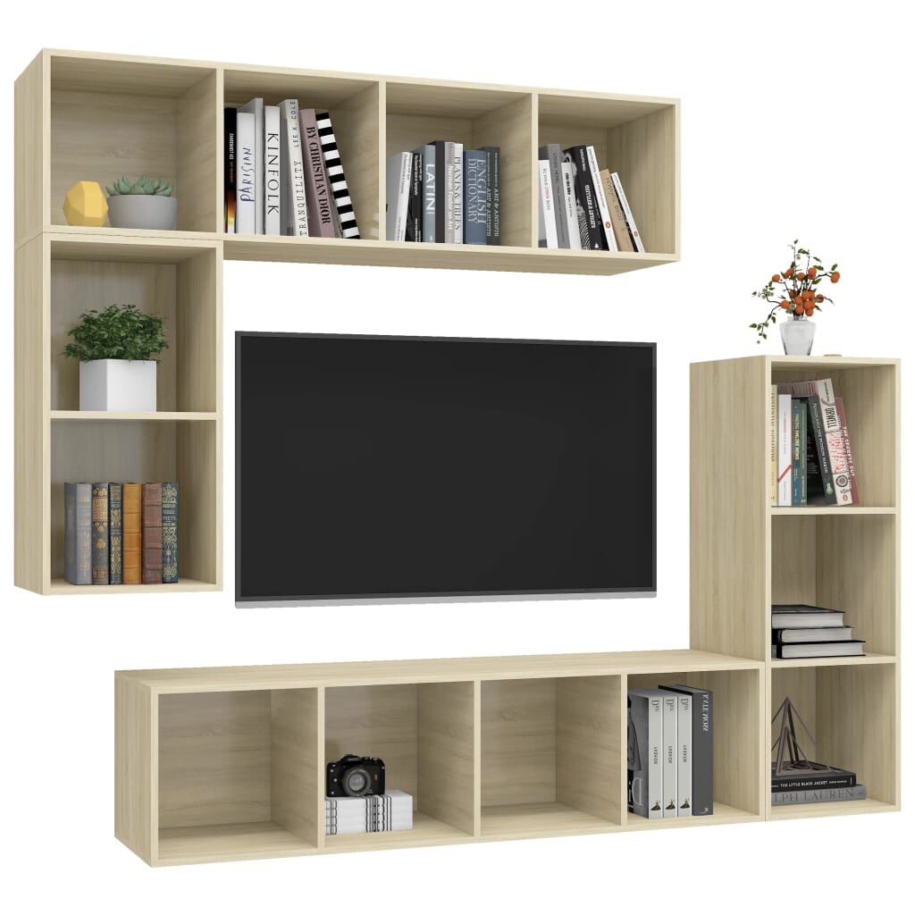 Equipped with ample storage room for organising various items, this hanging TV cabinet set will definitely be a practical and eye-catching addition in your home. The TV stand set is attached to the wall, making it a timeless addition to your home. This HiFi cabinet set is ideal for displaying or keeping any items you'd like well organised and within reach. Additionally, the stereo cabinet set is easy to clean with a damp cloth.