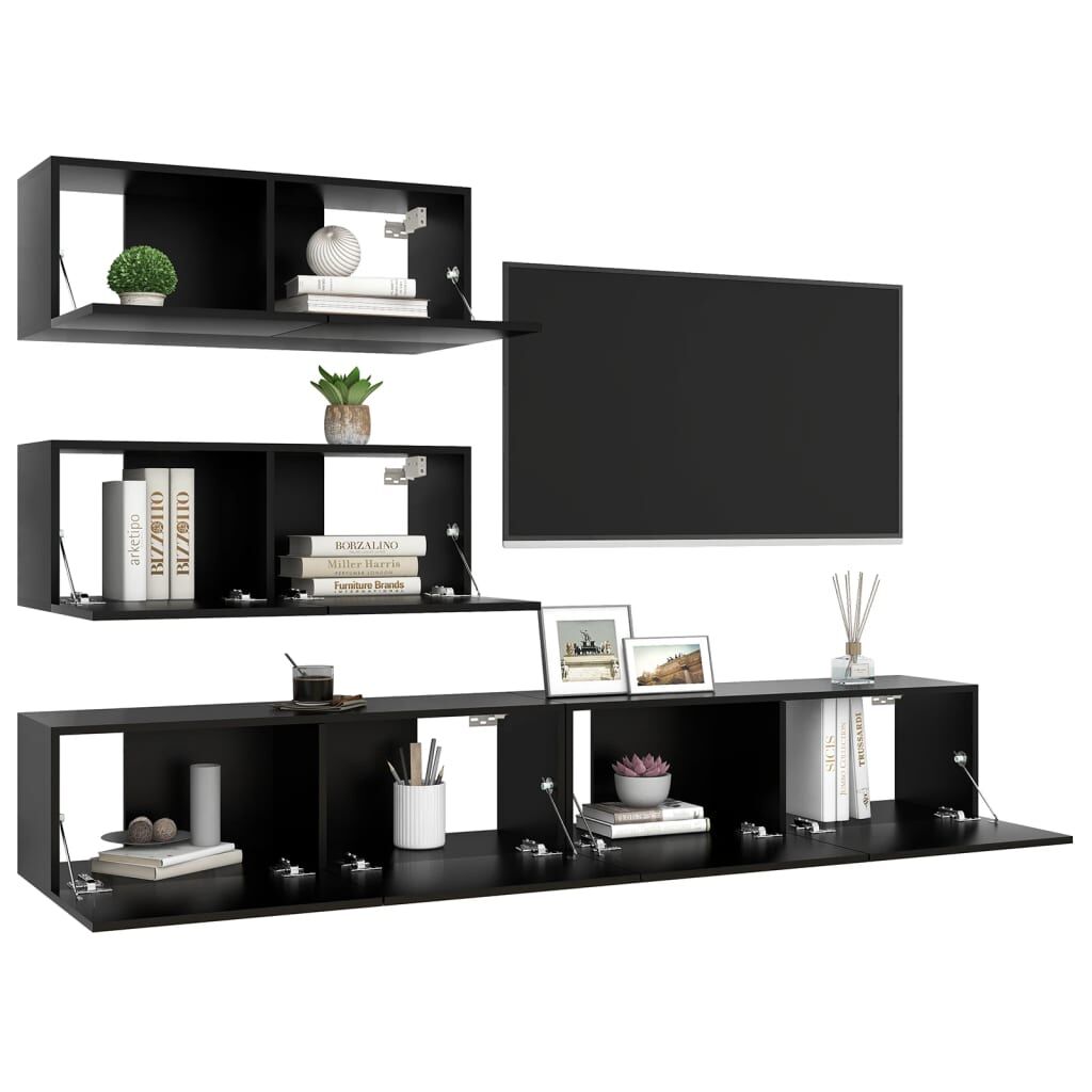 This TV cabinet set, featuring modern design and large storage space, becomes a focal point of your living room. This hanging TV cabinet set is made of engineered wood, making it sturdy and durable. The cabinet set is attached to the wall, making it a timeless addition to your home. The set features several compartments which make it an ideal place for storing all your magazines, DVDs or other items. This Hifi cabinet set is easy to clean with a damp cloth.