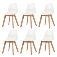 Our dining chairs have an elegant and timeless design, which will make them stand out in your kitchen or dining room. They are an ideal place for reading or enjoying Sunday lunch. The chairs have an ergonomically designed seat with integrated backrest in a modern, curved look. They are highly comfortable, and their stain-proof surface is easy to clean. Supported by solid wooden legs, these attractive chairs are sturdy and durable. Assembly is really easy. Delivery includes 6 dining chairs.