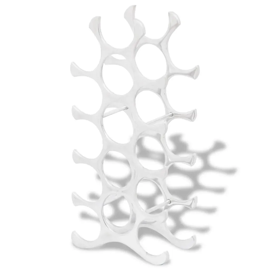 This wine rack will help you store and organise your favourite wines. It will make a decorative as well as practical addition to your room. This wine rack holds up to 15 bottles of wine. Its unique shape adds a touch of modern class to your living space. It will also make a great gift for your wine-loving friends and acquaintances. It's made of high-quality aluminium with a polished finish, which makes it extremely durable and it will last for generations! Bring this modern wine rack home today! Please note that bottles are not included in delivery.