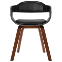 This dining chair with armrests, upholstered in luxurious, high-quality artificial leather, is aesthetically and ergonomically designed to make a decorative as well as comfortable addition to your dining room. Thanks to the foam-padded seat and backrest, our chair provides the utmost seating comfort. The high-quality walnut frame and feet make the chair sturdy and durable, and add to its stylish look. Delivery includes 1 dining chair.