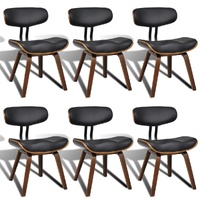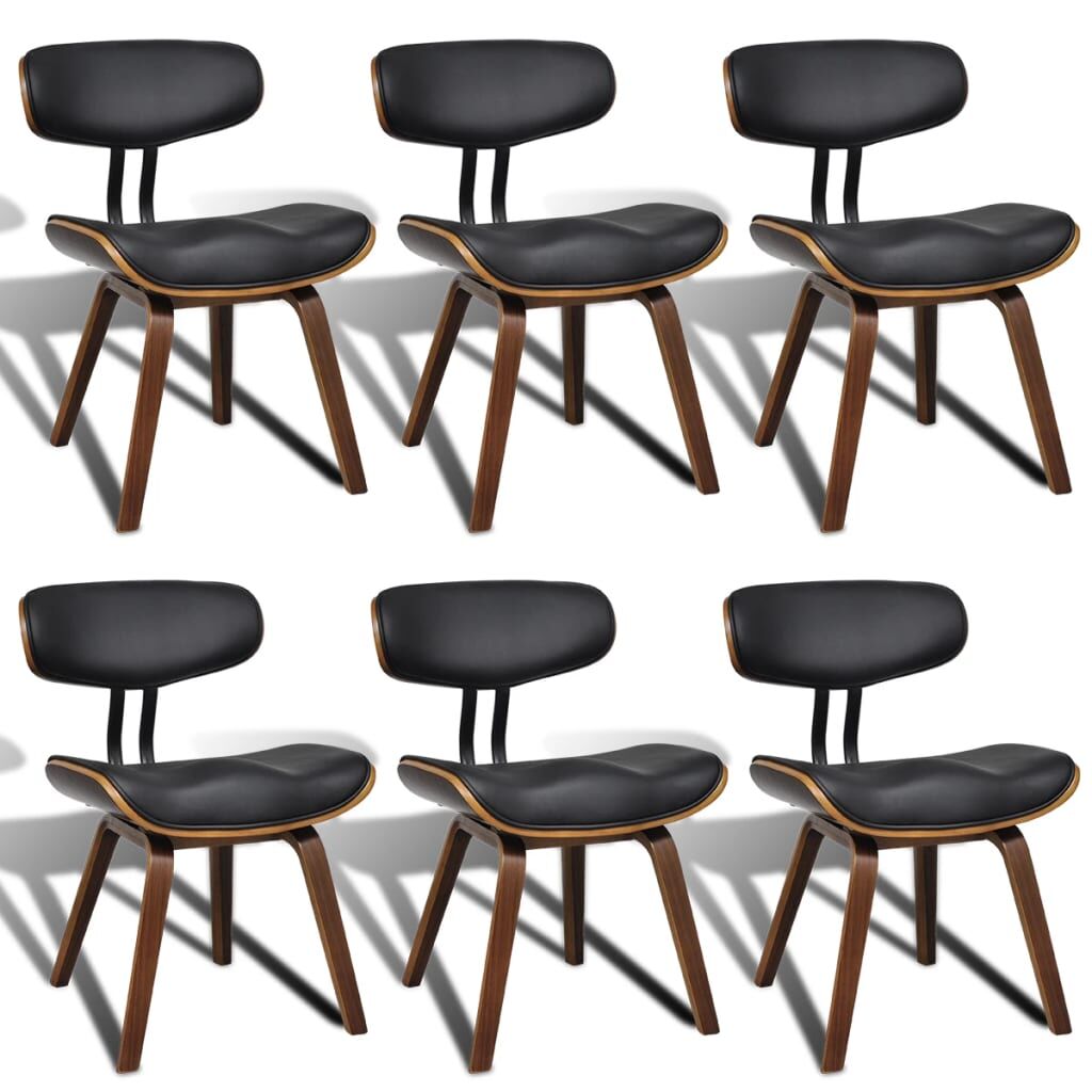 This dining chair set, including 6 pcs, is an eye catcher to decorate any room. With a neat and simple design, it will surely bring you seating comfort! The dining chair, covered with high-quality artificial leather, is well padded to provide optimum comfort. The sturdy bent wood frame adds unique beauty and style. The 4 wooden legs deliver high sturdiness and stability. The ergonomic design makes the dining chair very comfortable to sit on for hours. Delivery includes 6 artificial leather chairs.