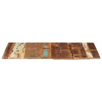 This wooden tabletop, with a simple and clean look, adds a rustic charm to your inside areas. Its solid wood construction makes it stable and secure. The replacement table top, made of solid tropical reclaimed wood, which is manufactured from wood salvaged from old structures like warehouses, barns, sheds, mills and mansions. The wood is a mix of mango, hardwood, teak etc, featuring the characteristics of different woods. Signs of wear and visible grain structure give each piece its own history and a unique look. Every step of the process is carried out with the most exceptional care, be it polishing, painting or lacquering. Additionally, this solid wood table top can be used for coffee tables, side tables, bar tables, telephone tables, console tables, bedside tables, shelves or as furniture board. You can also combine this tabletop with any styled legs according to your specific needs. The table top is easy to clean with a damp cloth. Important note: Colours vary from piece to piece, making each piece unique. The delivery is random, ensuring the exclusivity and individuality of your product.