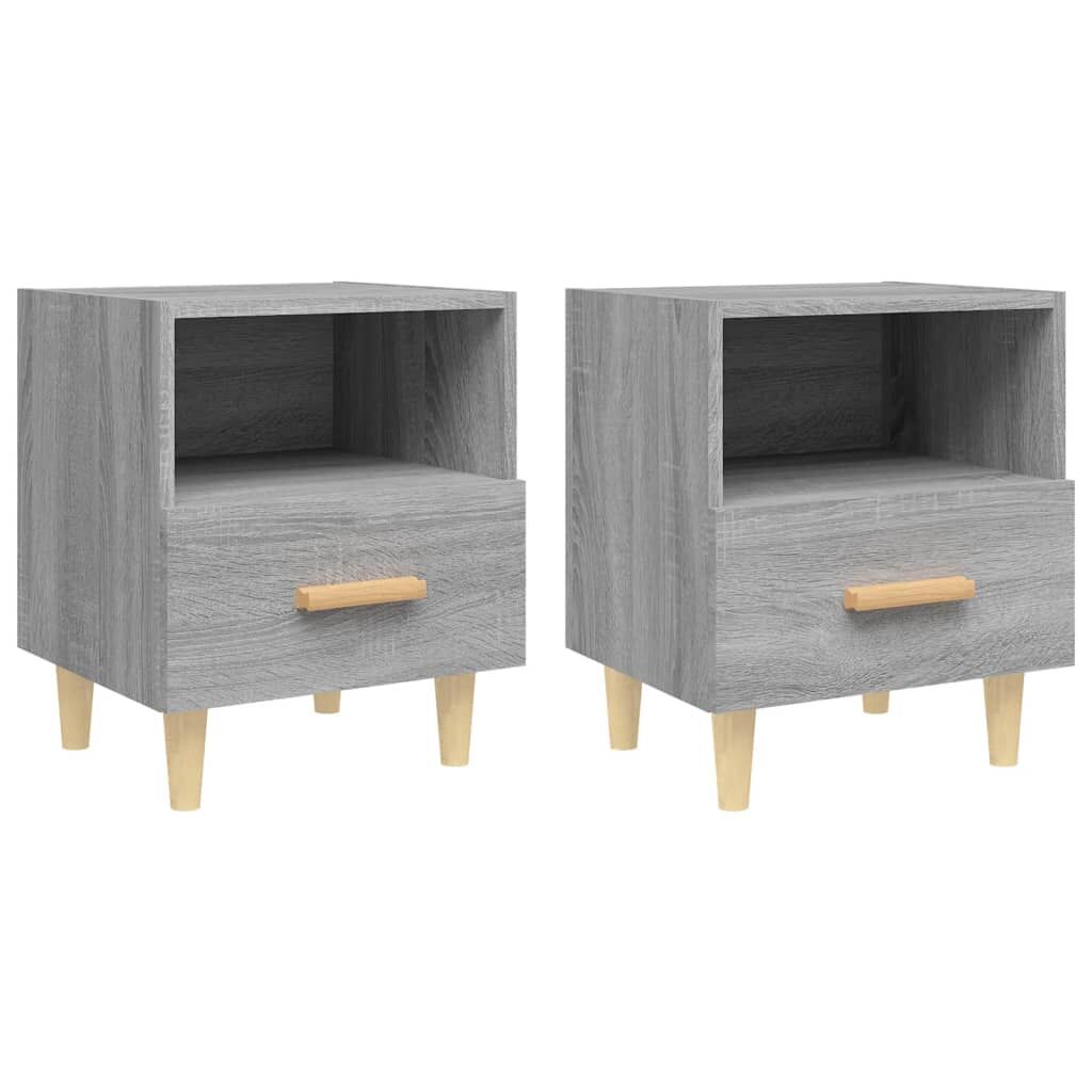 Featuring a Scandinavian charm, these bedside cabinets are meant to upgrade your interior to the next level. Premium material: The engineered wood is of exceptional quality with smooth surface and features strength, stability and resistance to moisture.Sturdy legs: The bedside table's legs are made of solid eucalyptus wood. Solid eucalyptus wood is a beautiful natural material. Eucalyptus wood is extremely dense and water repellent. The material is well-known for its rich reddish-brown colour.Ample storage space: The side cabinet has a compartment and a drawer with wooden handle. The compartment and drawer allow you to keep your things organised.Sturdy top: The sturdy top of the bed side cabinet is ideal for displaying decorative objects, photo frames, or potted plants.