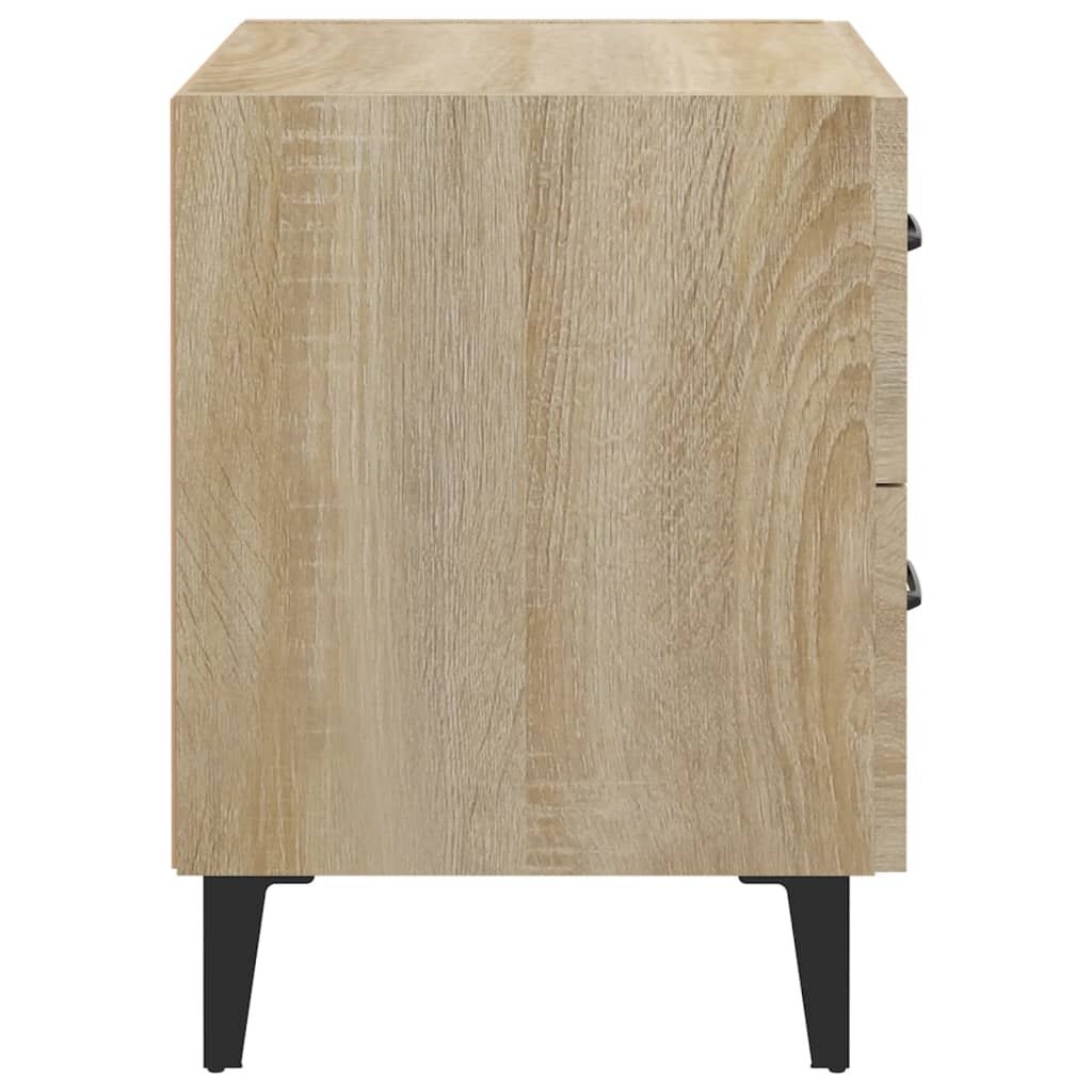 Introduce an air of industrial charm to your interior with these bedside cabinets! Premium material: The engineered wood is of exceptional quality with smooth surface and features strength, stability and resistance to moisture.Sturdy legs: The metal legs add a charming industrial style to your interior while ensuring stability. Ample storage space: The bedside table has two drawers with metal handles. The spacious drawers allow you to keep your things organised. Sturdy top: The sturdy top of the side cabinet is ideal for displaying decorative objects, photo frames, or potted plants.
