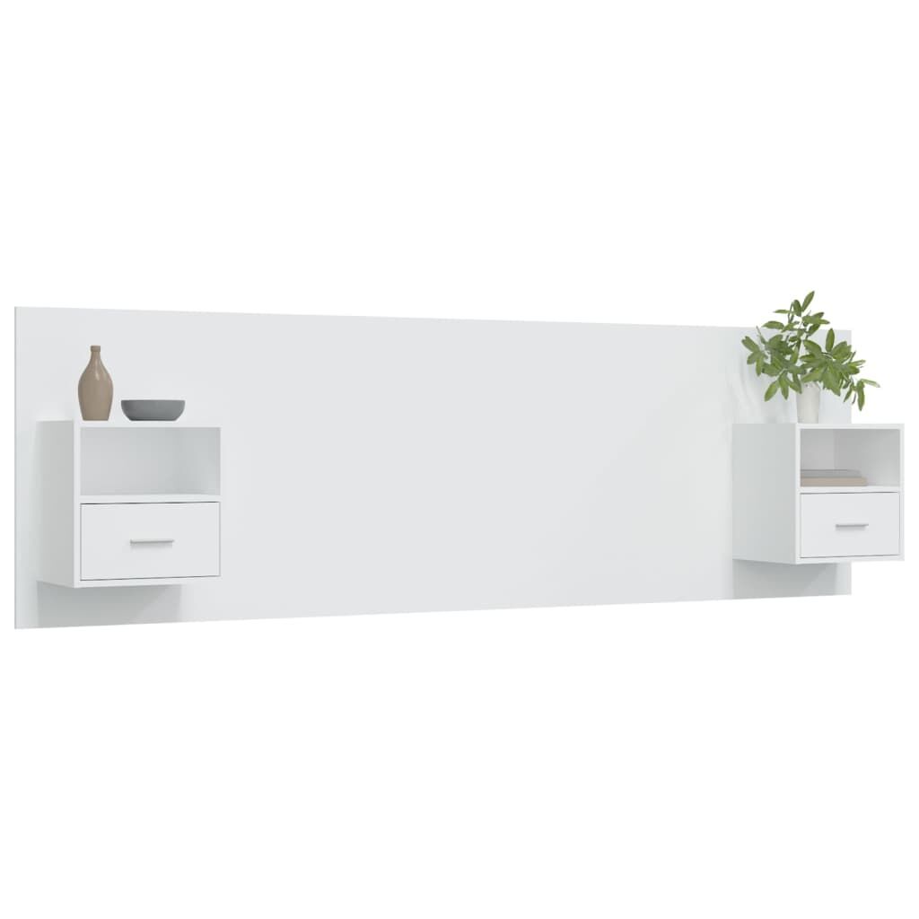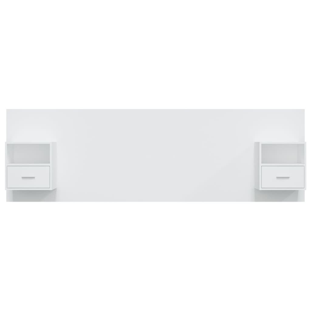 The sturdy bed headboard with cabinets, featuring a classic design, gives your bed frame a complete look and is suitable for any bedroom. Sturdy material: The engineered wood is of exceptional quality with smooth surface and also features strength, stability and resistance to moisture.Wall-mounted design: The floating nightstands and headboard can be wall-mounted. That way, you can maximise your floor space and keep the area clean.Storage space: The bedside unit features spacious storage space which allows you to keep your things organised. WARNING:Screw(s) and plug(s) for inside the wall are not included. Seek and use screw(s) and plug(s) suitable for your walls. If you are uncertain, seek professional advice. Read and follow each step of the instruction carefully.