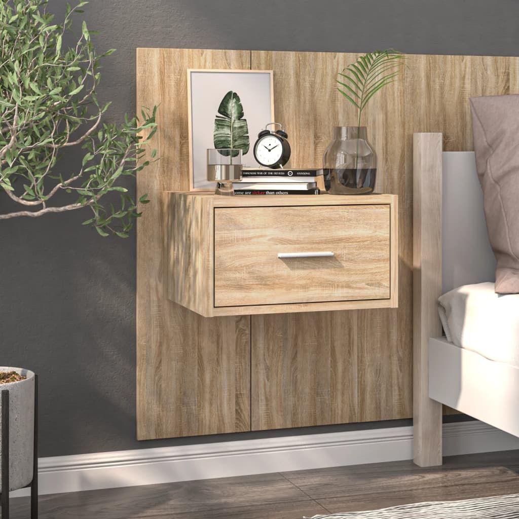 These wall-mounted bedside cabinets are the perfect solution for your living space to maximise space and keep the floor areas clean. Wall-mounted design: The floating bedside unit can be wall-mounted to add extra storage space. That way, you can maximise your floor space and keep the area clean.Multifunctional cabinet: The floating bedside cabinet serves as the ideal place to put items such as books, collectables, ornaments, and more. It can be combined with the bed headboard.Storage drawer: The spacious drawer allows you to keep your things organised.Easy-to-clean material: The engineered wood is of exceptional quality with smooth surface and also features strength, stability and resistance to moisture. Made of engineered wood, the wall hung bedside cabinet is easy-to-clean. WARNING:Screw(s) and plug(s) for inside the wall are not included. Seek and use screw(s) and plug(s) suitable for your walls. If you are uncertain, seek professional advice. Read and follow each step of the instruction carefully.