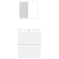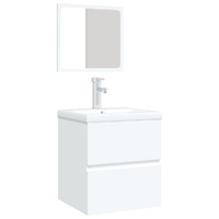 This bathroom sink cabinet with a built-in basin and mirror, featuring spacious storage space, is a chic and timeless addition to any bathroom or washroom. Sturdy material: The under sink cabinet is made of engineered wood, that is of exceptional quality with smooth surface and also features strength, stability and resistance to moisture.Ample storage: The bathroom sink unit features a drawer, offering ample storage space to store items in your bathroom.Practical design: The top of this bathroom cabinet is ideal for placing the sink.Wall-mounted function: The bathroom cabinet and the make up mirror can be wall-mounted to add extra storage space. That way, you can maximise your floor space and keep the area clean.Overflow function: An overflow is also equipped to flow water out when it gets too full. Note:Screw(s) and plug(s) for inside the wall are not included. Seek and use screw(s) and plug(s) suitable for your walls. If you are uncertain, seek professional advice. Read and follow each step of the instruction carefully.The tap and the drain are not included in delivery.Each product comes with an assembly manual in the box for easy assembly.