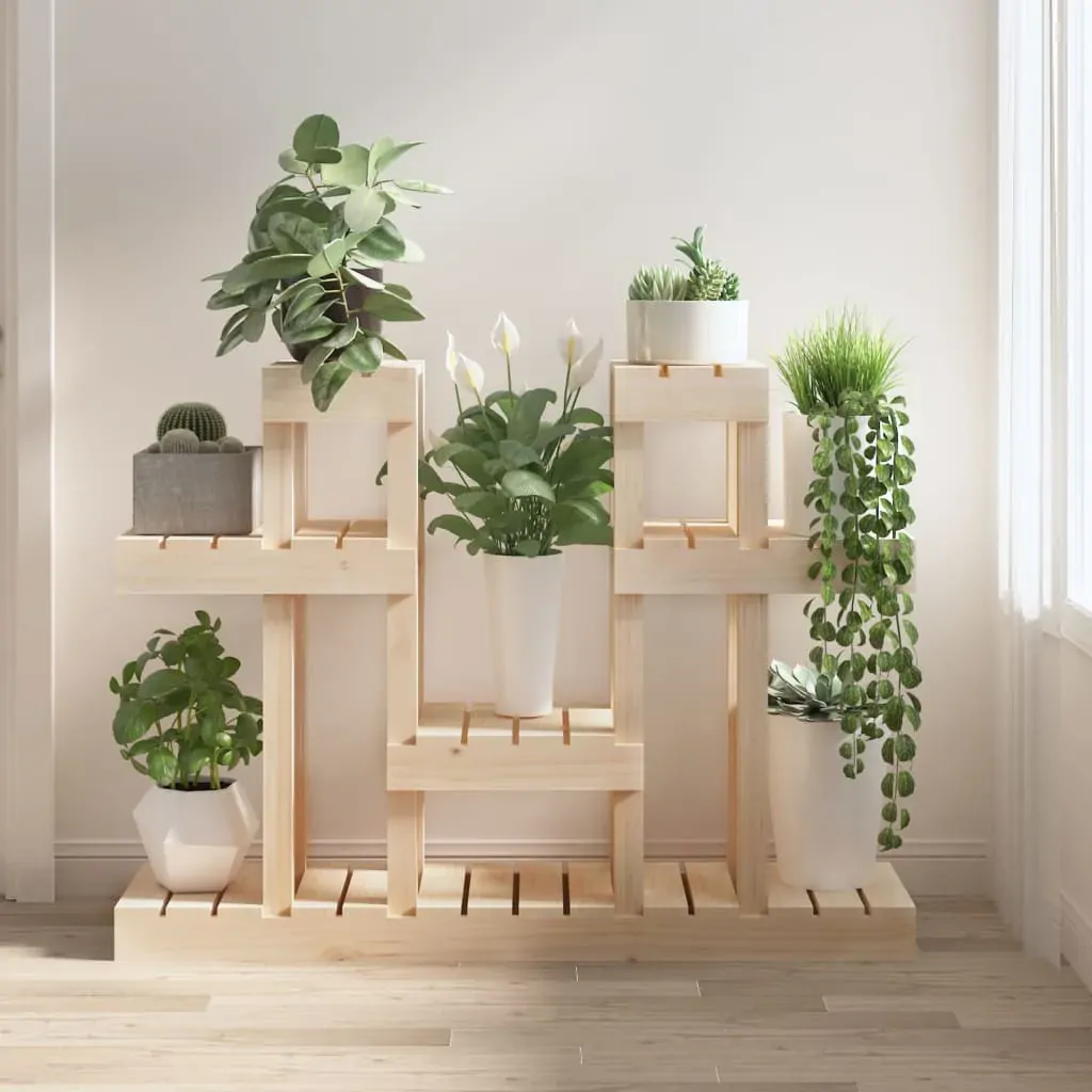 Display your favourite flower and plants with this charming wooden plant stand and make your current space attractive! Solid pine wood: Solid pine wood is a beautiful natural material. Pine wood has a straight grain, and the knots give the material its signature, rustic look.Stable frame: The wooden frame ensures sturdiness and stability.Ample space: This plant pot stand has shelves of different heights with enough space to display your favourite potted plants or garden ornaments.Unique design: The unique design of the plant shelf displays your flowers beautifully and helps plants get more sunlight and grow better. Also, this outdoor plant stand is surely a beautiful addition to your living room, patio and garden. Warning:In order to prevent overturning, this product must be used with the wall attachment device provided. Note:Each product comes with an assembly manual in the box for easy assembly.