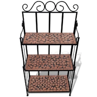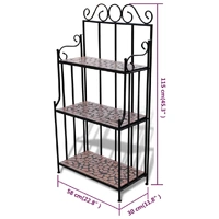 This mosaic plant stand features elegantly-curved iron frame and 3 mosaic-patterned ceramic layers. It will surely become an eye-catcher in your garden, balcony, terrace, etc. The 3-layer plant rack has a height of 115 cm, and could be perfectly placed against any wall. Its iron frame contributes to the sturdiness, while the ceramic top is also easy to clean. It is very durable for a long-term service life. Please note this product is not suitable to be left outside in cold condition.