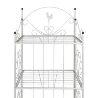 This white plant rack, with flower-patterned detailing, is a perfect choice to place your plants, which will be a real eye-catcher in any garden, patio or terrace. The 4-tier plant rack has a height of 153 cm. High quality steel makes this plant rack very durable, while powder coating makes it rust-proof and enhances its longevity.
