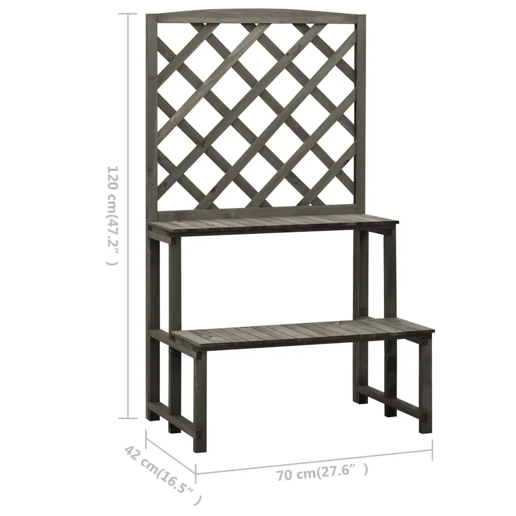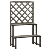 This solid wooden plant stand with ladder shelves is a perfect way to display a rich mixture of plants and flowers. It is especially suitable for climbers with trellis. It makes a practical as well as a decorative addition to your garden, balcony, patio, etc. This flower stand, made of solid firwood, is sturdy and suitable for outdoor use. The garden plant stand features shelves in two different heights that create ample storage or display room for potted plants and garden ornaments. The ladder design displays your flowers beautifully and also helps plants get more sunlight and grow better. Additionally, the trellis offers excellent support for climbing plants.