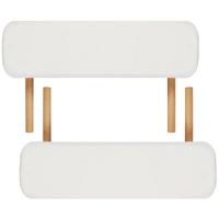 The 2-zone foldable massage table with wooden frame is suitable for use by amateurs and professionals alike. The cushion, padded with high-density foam, is highly comfortable, and resistant to disinfectants and massage oil. The headrest and arm supports are adjustable, as is the height of the table, which enables its user to lie comfortably and the massage therapist to select the desired working height. The table is easy to assemble. It can be folded into the shape of a suitcase. A carrying bag is included for easy transport and storage.