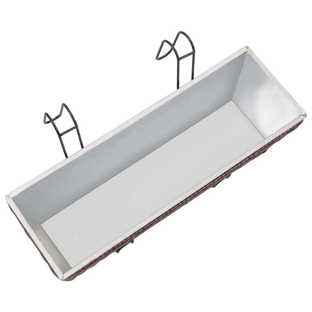 This lovely hanging planter set consists of 2 rattan pots and 2 removable zinc pots. The rattan is made of durable water-proof wicker, so these planters will be perfect additions to your outdoor space. They will fit most of your windowsills or balcony railings. Its tight weaving structure produces a smooth finish and two metal holders offer great loading capacity. Equipped with 1 zinc container inside each rattan pot, this planter will ensure a long service life. All kinds of lively green plants and flowers can be well placed into the pots. Get ready to have some fresh air from your terrace, balcony and windowsill with our beautiful hanging planters!