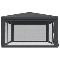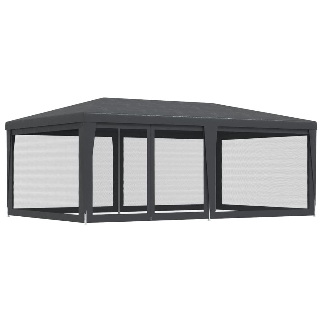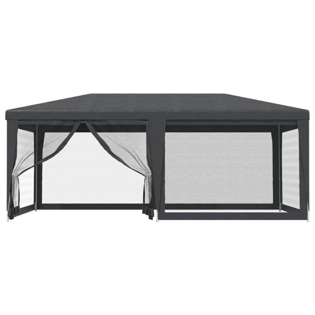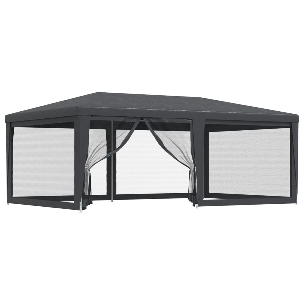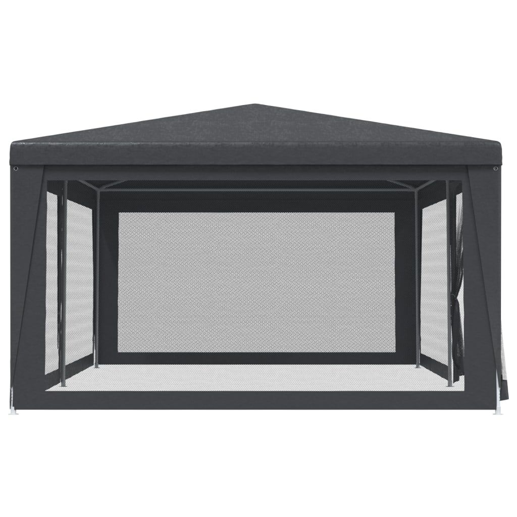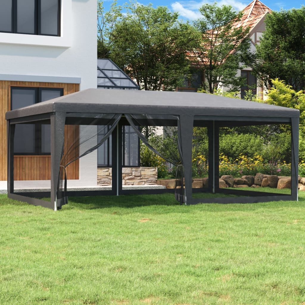 This super cool party tent, with a heavy-duty iron frame, a water-resistant roof and six mesh sidewalls, is an ideal shelter from the sun. Premium material: This gazebo is made of high-density polyethene (HDPE) that protects you from direct sunlight and allows enough wind. The HDPE is specially treated, so it is water-resistant too.Iron frame: The iron frame of this pavilion ensures sturdiness and stability.Practical design: The marquee has six mesh side walls, which protect you from pesky insects. And one of the side walls has a zipper for entrance and easy access.Wide applications: This event tent is an ideal choice for a wide range of outdoor events, such as shows, weddings, parties, BBQs, festivals and so on. Note:This product should NEVER be used under bad weather, such as strong wind, heavy rain, snow, storm, etc.Each product comes with an assembly manual in the box for easy assembly.