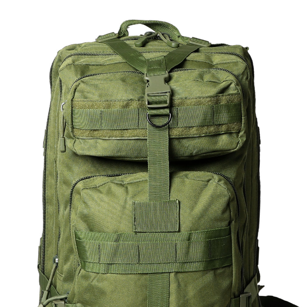 Preparing for an adventure far far away! Take our Military Backpack with you. A product designed to support your journey from start till the end. When you embark on a long journey such as camping or hiking there is a bunch of essential stuff you need to carry along. Things including clothes med-kits cookery essentials and many more. You cannot carry all of these in separate bags to solve this issue of space and convenience we have designed a backpack that is very easy to carry and provides ample space inside to store all the essential stuff. Designed to be exceptionally comfortable a special breathable mesh layer is provided within. Provided with an adjustable shoulder strap eases the pain on your shoulder effectively. To make it more convenient a unique chest and side buckle is provided. It lets you choose the comfort level. Provides you total freedom when it comes to adjustments.