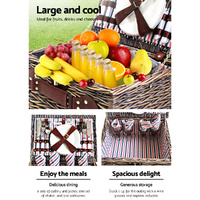 Made from quality willow with PU leather straps and cotton linen lining, this sensational 4 person picnic basket is designed for outdoor family and friends picnic fun. Putting away the devices, grab some picnic food and physically reconnect. 4 sets of cutlery are included for 4 people to enjoy an afternoon of outdoor fun. The package also includes a large colour matching blanket. This 4 person picnic basket is perfect for the races, harvest picnics, grape grazing events, Christmas and summer gatherings! You'll be surprised how often it will be used.