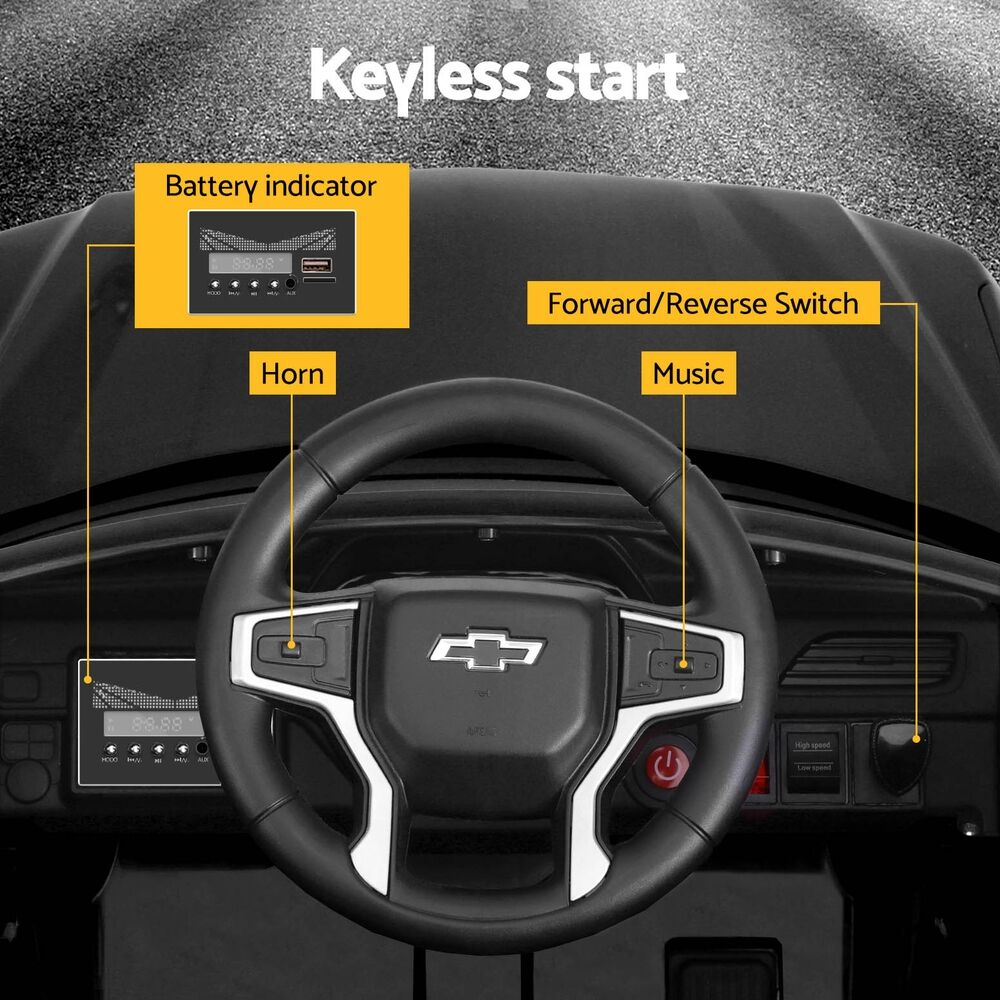 Let your little one experience the excitement of driving a Chevrolet Tahoe. The steering wheel and acceleration pedal to control the forward and reverse movement give your child control and a realistic driving experience. It comes with some cool entertaining features that will allow your child to have hours of fun. It includes a safety seat belt and a remote control for parent supervision, making it the ideal choice for parents who want a safe and fun way for their children to explore their environment. The licensed Chevrolet Tahoe is the perfect gift for any young car enthusiast.