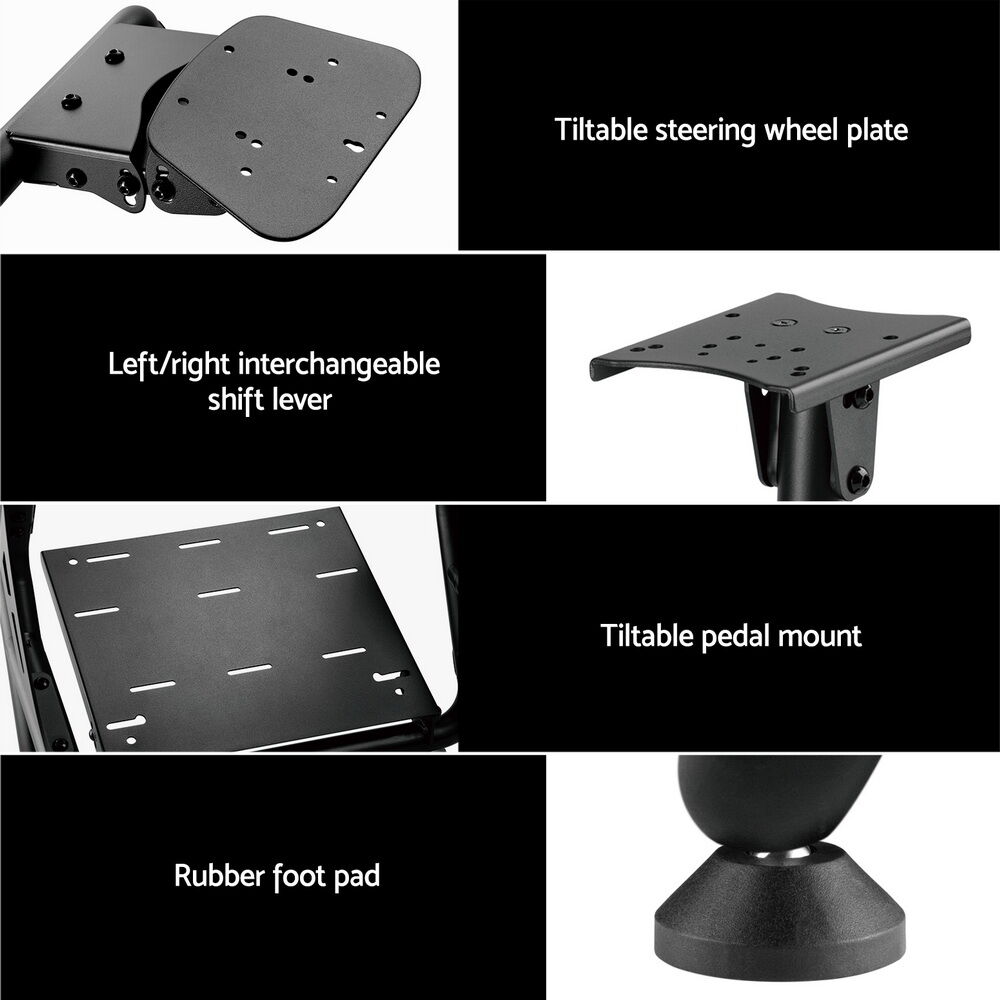 Built for die-hard racing fanatics, the Artiss Racing Simulator Cockpit has everything you need to experience the thrill of racing from your own home. Built from premium steel and PVC leather, the simulation cockpit is strong, stable, and provides a realistic racing experience. The chair has an adjustable backrest with forward and back tilting to get you comfortable. The steering wheel plate, gear shifter and pedal mount are also adjustable to find your ideal position for hours of play. The pre-drilled mounting holes make installation easy and will suit most modern wheels, gear shifters and pedals including Logitech, Fanatec and Thrustmaster. Finally, rubber foot pads keep everything in place and protect your floors from scratches. Want to level up your racing game experience? Get your very own Artiss Racing Simulator Cockpit and feel the virtual wind in your hair.