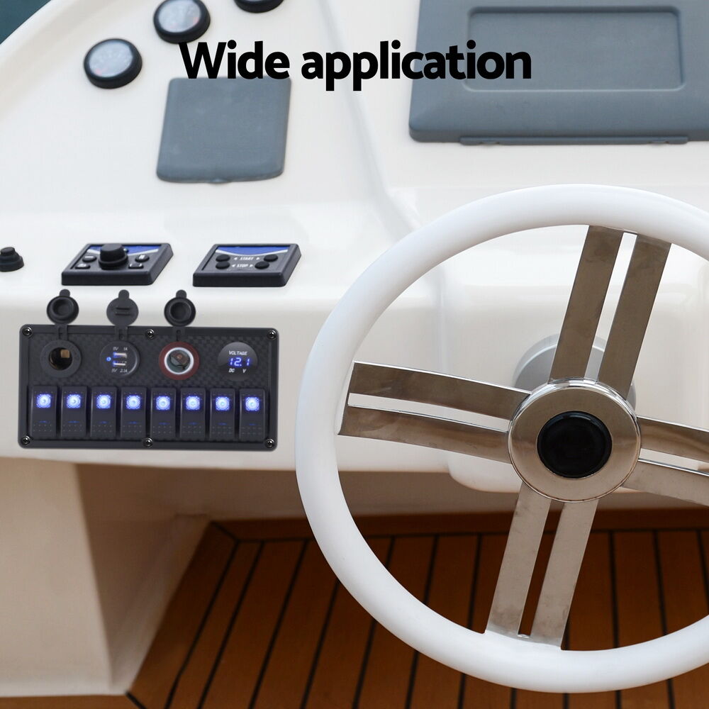 Upgrade your vehicle's functionality with this Giantz Switch Panel, featuring 5 blue LED rocker switches, a dual USB charger, and a 12V power socket. It includes voltage monitoring and a short circuit protection feature, ensuring safety and reliability while powering your devices on the go.