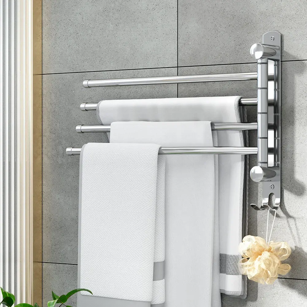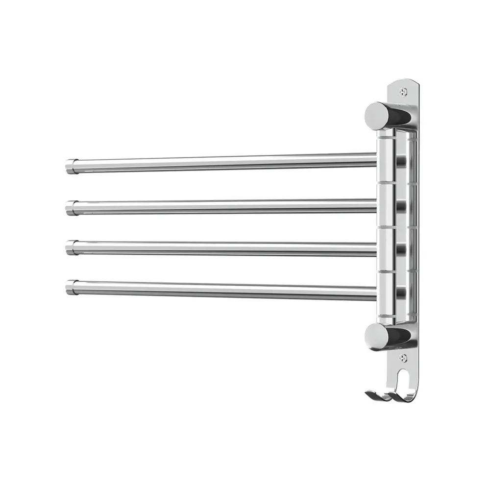 Give your bathroom a glossy makeover with the new sleek and functional Towel Rack. Crafted with quality stainless steel, the rack is rust and corrosion-resistant to ensure long-lasting use. Designed with convenience in mind, the four rungs can swivel up to 180 degrees to easily adjust to your desired position. The rack features an anti-drop design to keep clothes and towels in place, while anti-noise silicone gaskets keep the rack silent. An extra hanging hook helps you hang additional towels and clothes. With its easy installation process, this elegant storage solution is perfect for your bathroom, kitchen or laundry room. Upgrade your space and enjoy a clutter-free bathroom with our Towel Rack.