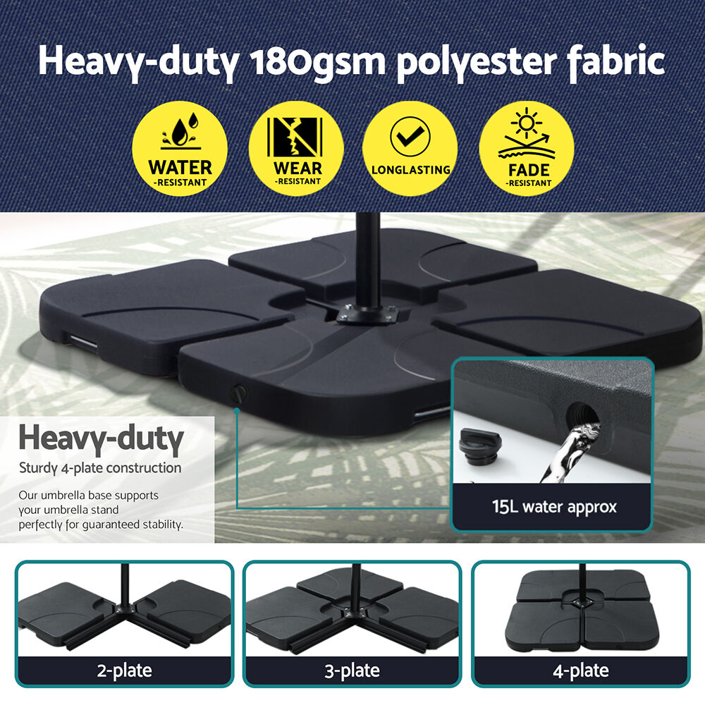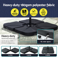 Introducing our Instahut Outdoor Umbrella with UV50+ polyester canopy, resistant to water and wear, and built with a sturdy steel frame for durability. This umbrella also features solar-powered LED lights with 32 LEDs on the ribs, alongside an easy open/close system and user-friendly crank for effortless operation.