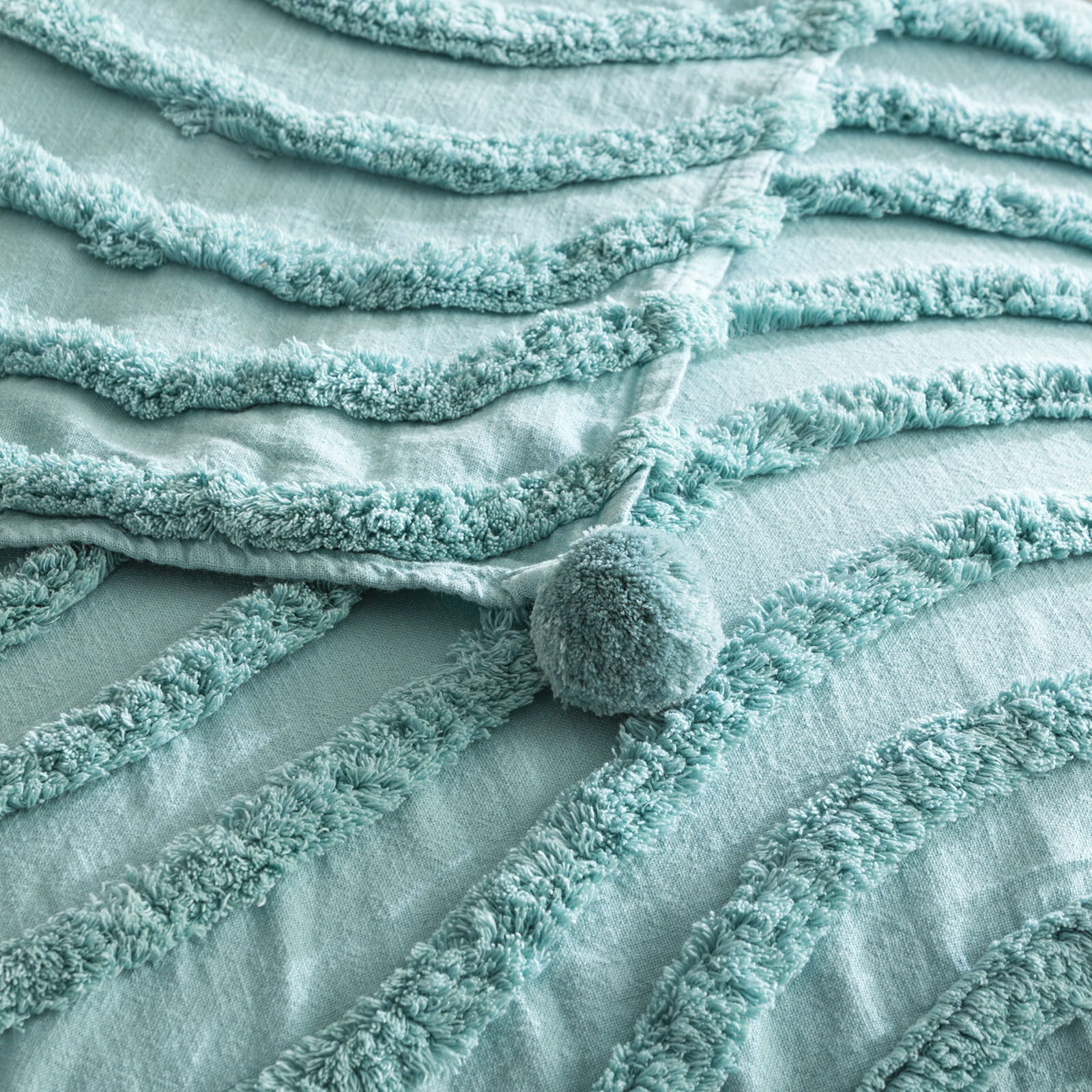 Heavily tufted front with exposed Wave Pattern features corner tassels. Oeko-Tex Green certified, so it is free from harmful chemicals.