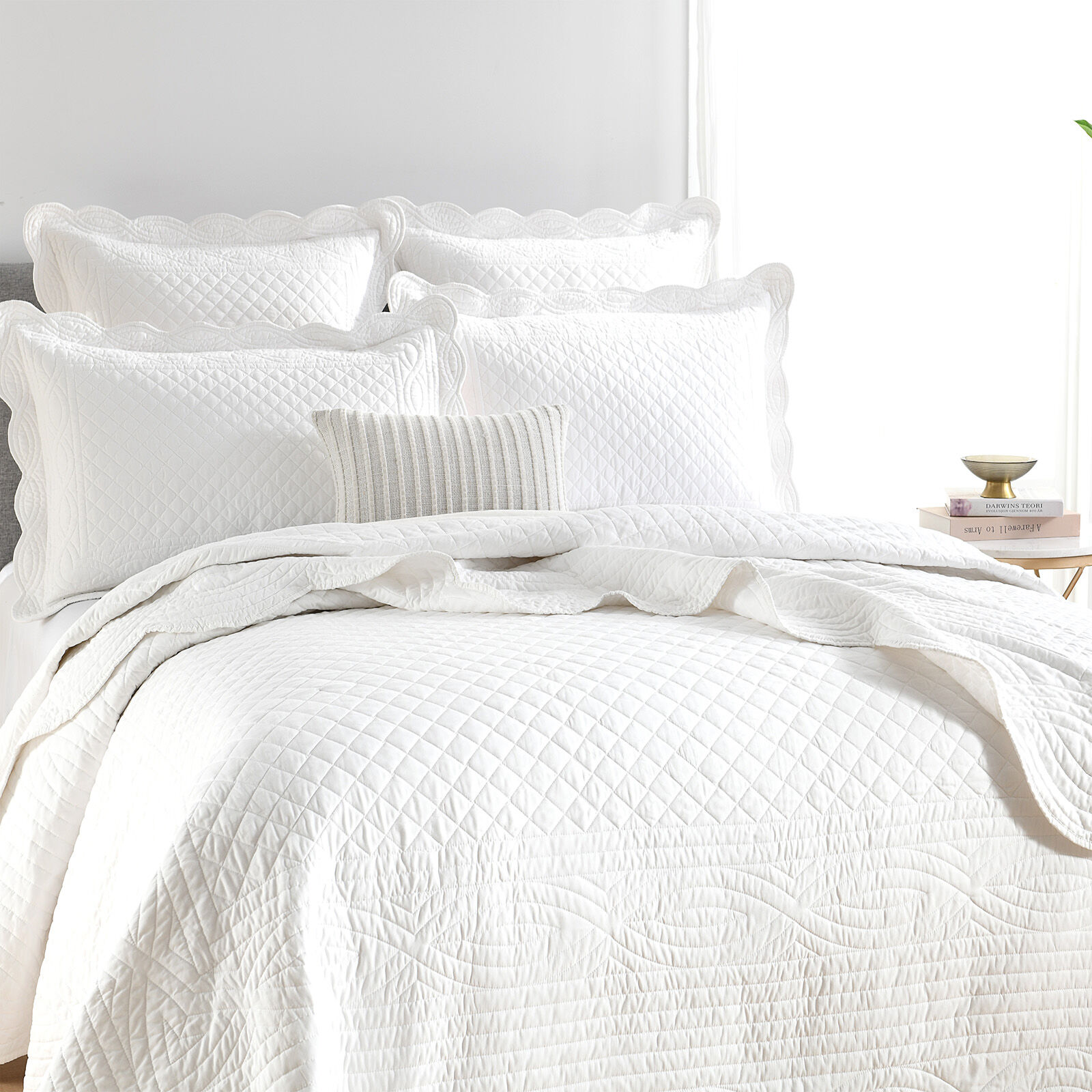 The Scallop coverlet set is designed to offer a combination of style and comfort, with a nod to French quilting tradition and decorative details like scallop edges. Its compatibility with different colours and patterns, along with the included matching pillowcases, makes it a versatile choice for creating an elegant and cohesive bedroom decor.