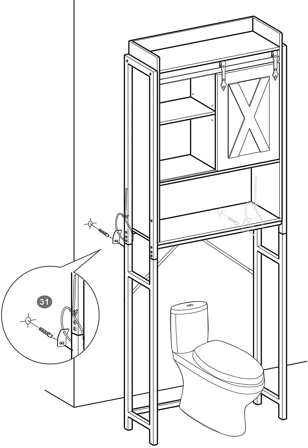 The Way for Max. Stability: Is it too high and unstable? You need not to worry, as this over-the-toilet rack is made of robust particleboard and stable steel, and the anti-tip devices ensure the stability