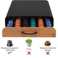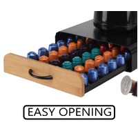 CARLA HOME Coffee Pod Holder Bamboo Storage Drawer Compatible with Nespresso Coffee Pods, Metal 60 Nespresso Pods Capsule Holder Coffee Machine, Kitchen Organizer (Natural)