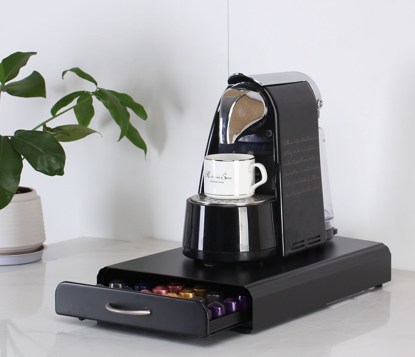 CARLA HOME Coffee Pod Holder Storage Drawer Compatible with Nespresso Coffee Pods, Metal 60 Nespresso Pods Capsule Holder Coffee Machine, Kitchen Organizer (Black)